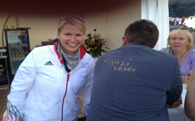 Über uns geht Politik, Wirtschaft und der Sport live Auf Sendung. Franzi Weber Gold bei Olympia 2012 im Kanu. Hier beim Olympia-Empfang in Brandenburg